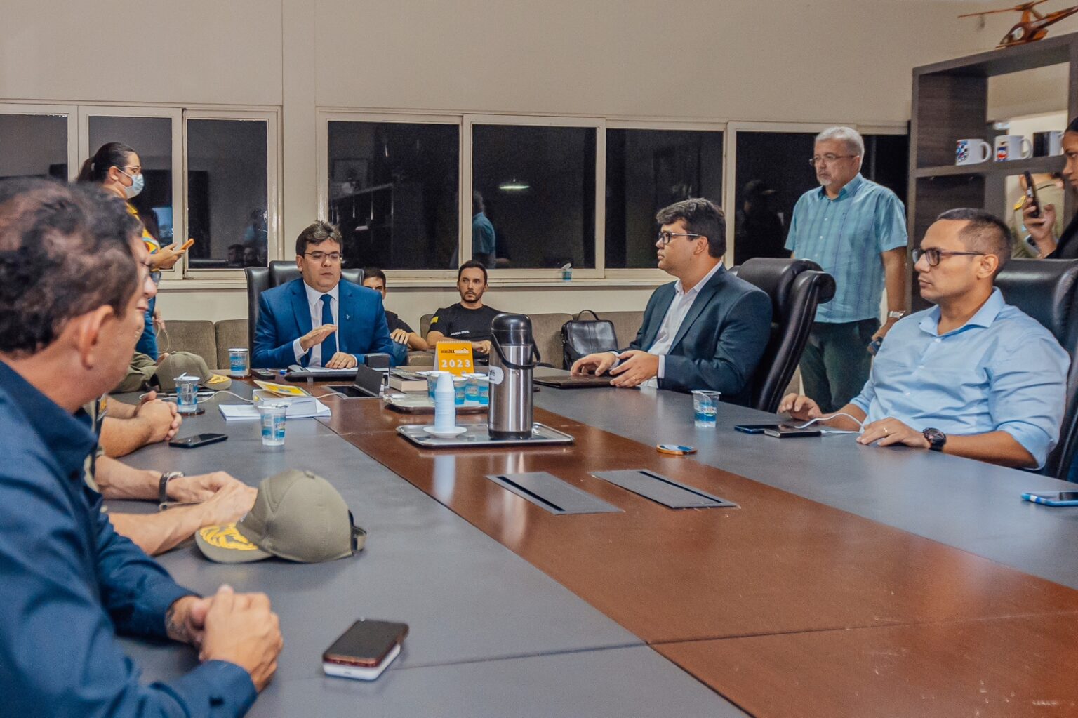 O governador do Piauí, Rafael Fonteles, reuniu-se, na noite deste domingo (8), em caráter de urgência, com os comandantes das forças de Segurança Pública do Estado para definir ações em relação aos atos terroristas ocorridos em Brasília, no Distrito Federal, com atentados ao Palácio do Planalto, Congresso Nacional e Supremo Tribunal Federal (STF). No encontro, o chefe do Executivo piauiense e o comando da Segurança Pública traçaram um plano de ação a fim de evitar atos semelhantes no Piauí e lançaram apoio às forças nacionais que operam na capital federal.