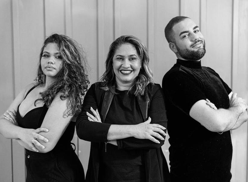 A empresária Luziane Gomis toda orgulhosa posando com sua equipe de milhões: Maluzinha e Breno Makeup. Belo click.