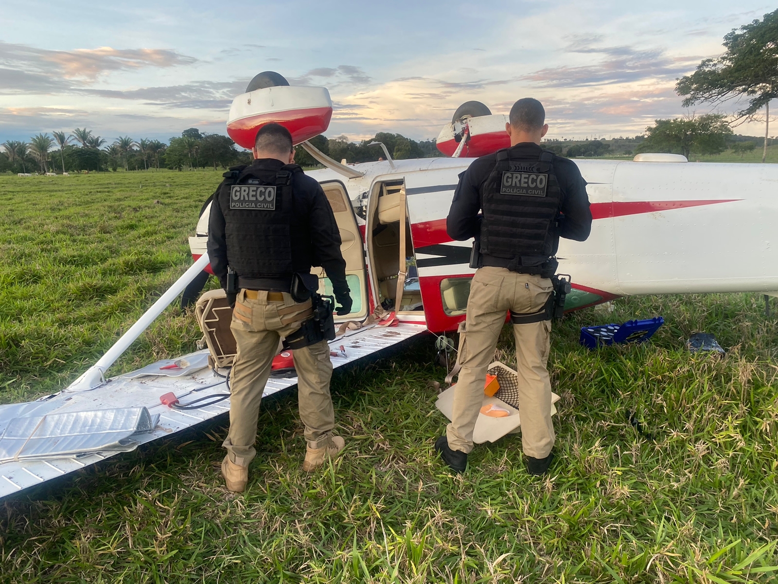 Na manhã desta segunda-feira (23), equipe do GRECO se deslocou para o estado do Mato Grosso para auxiliar na identificação da aeronave, que apresenta sinais de adulteração, e na investigação da possível ligação dos três conduzidos com o crime ocorrido em Teresina e com o tráfico internacional de drogas, além de auxiliar na busca dos dois suspeitos ainda foragidos.