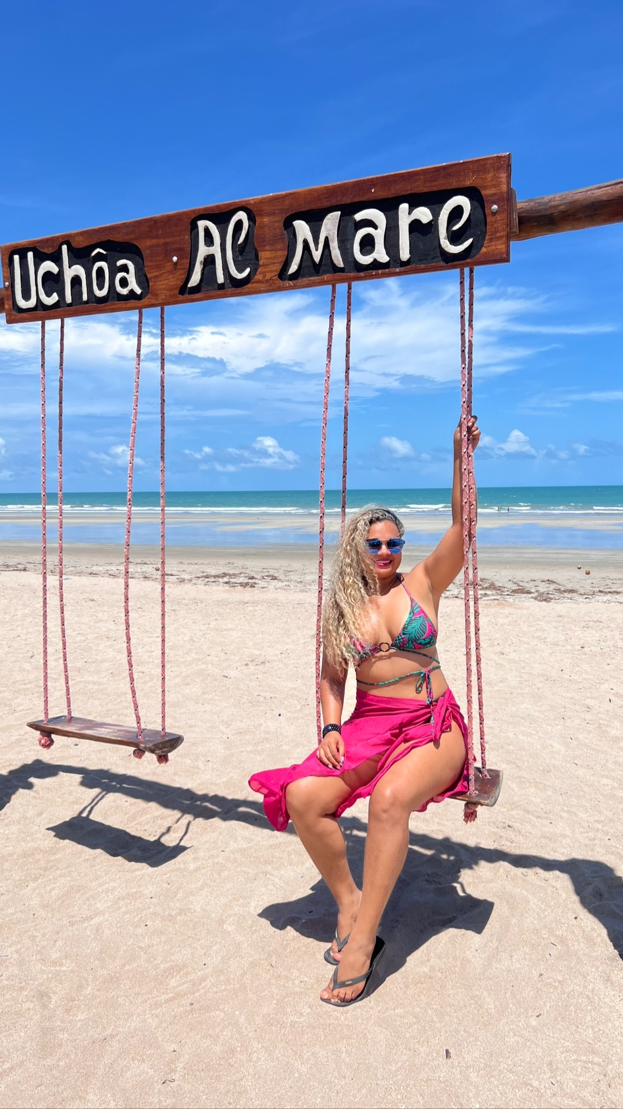 A influencer digital Eliana Macêdo em momento de lazer na praia Barro Preto, em Luís Correia.