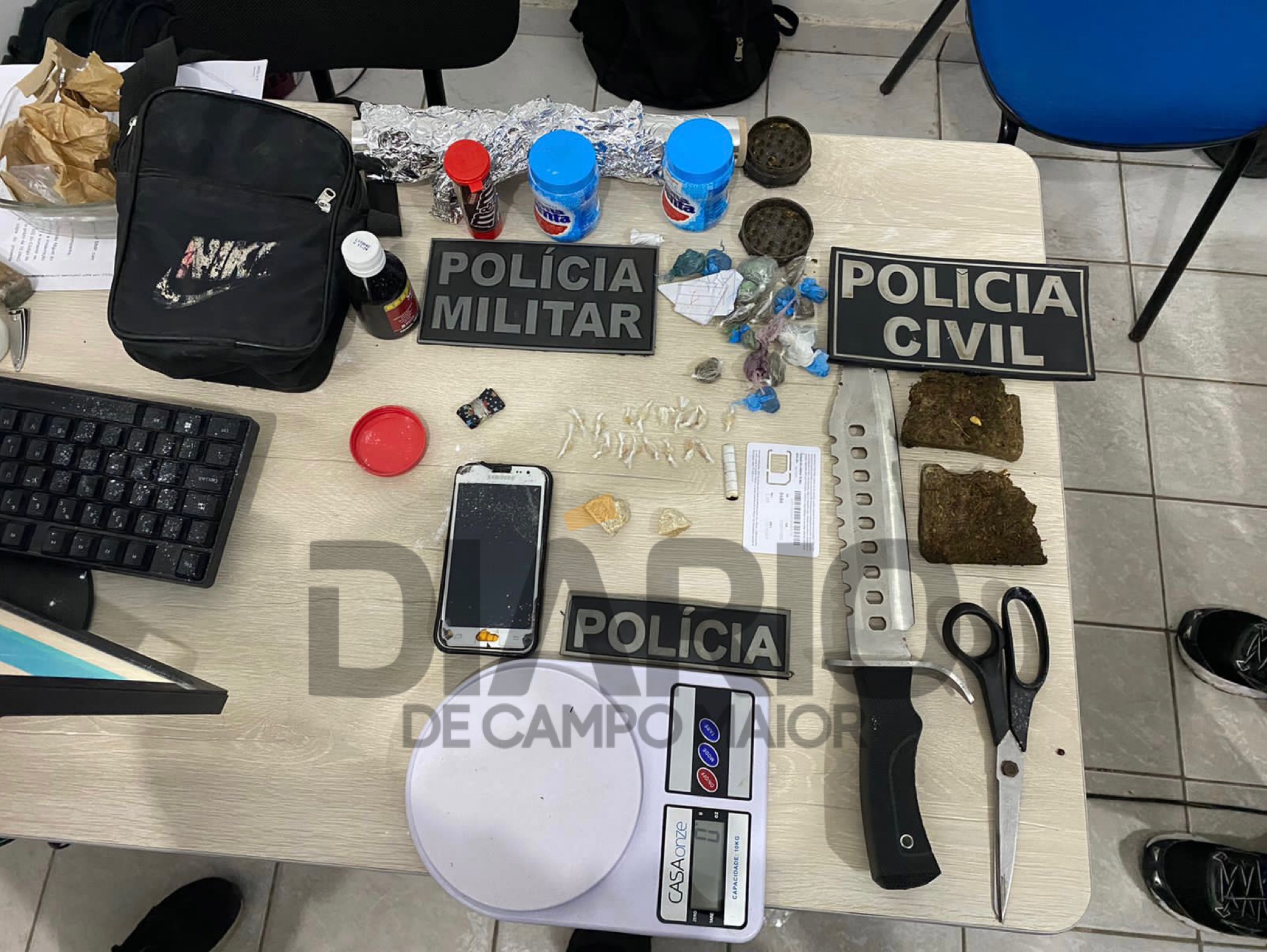 Por volta das 16h30, a polícia se deslocou a dois endereços pertencentes a outro acusado, de iniciais A.G.F., e conseguiram aprender drogas como maconha e crack já embaladas, balança de precisão, celular, papel alumínio e outros objetos. A ação terminou com a condução de quatro pessoas para a delegacia da cidade.