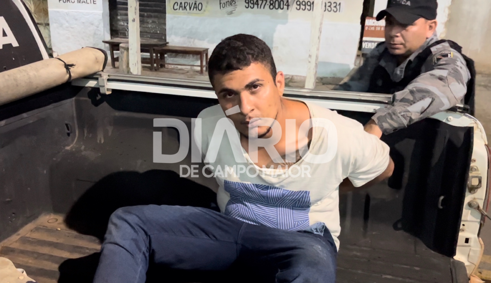 Policiais da Força Tática de Campo Maior-PI conseguiram efetuar a prisão de um jovem identificado como Mateus Ribeiro, de 25 anos, na noite desta segunda (20), na localidade Alto do Meio. Os policiais conseguiram interceptar ele, que juntamente com outro homem, são acusados de assaltar uma residência no município de Castelo do Piauí, região norte do estado, e ter feito um casal refém na casa, levando um carro, dinheiro e vários objetos.