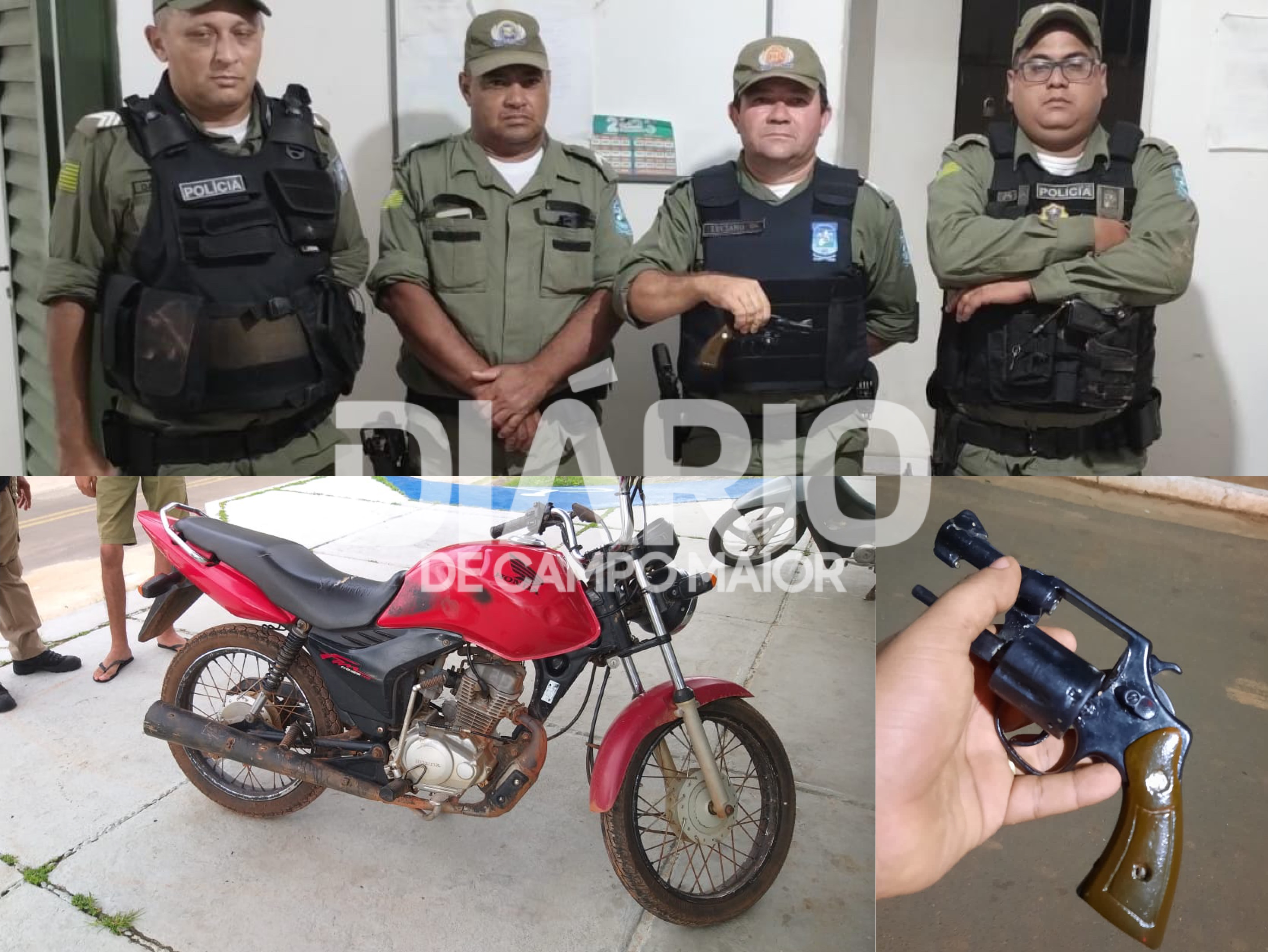 Neste domingo (09), a Polícia Militar de Nossa Senhora de Nazaré, no norte do Piauí, conseguiu êxito em duas ações distintas e que resultaram na recuperação de uma moto roubada, na prisão de um homem e apreensão de uma arma de fogo.