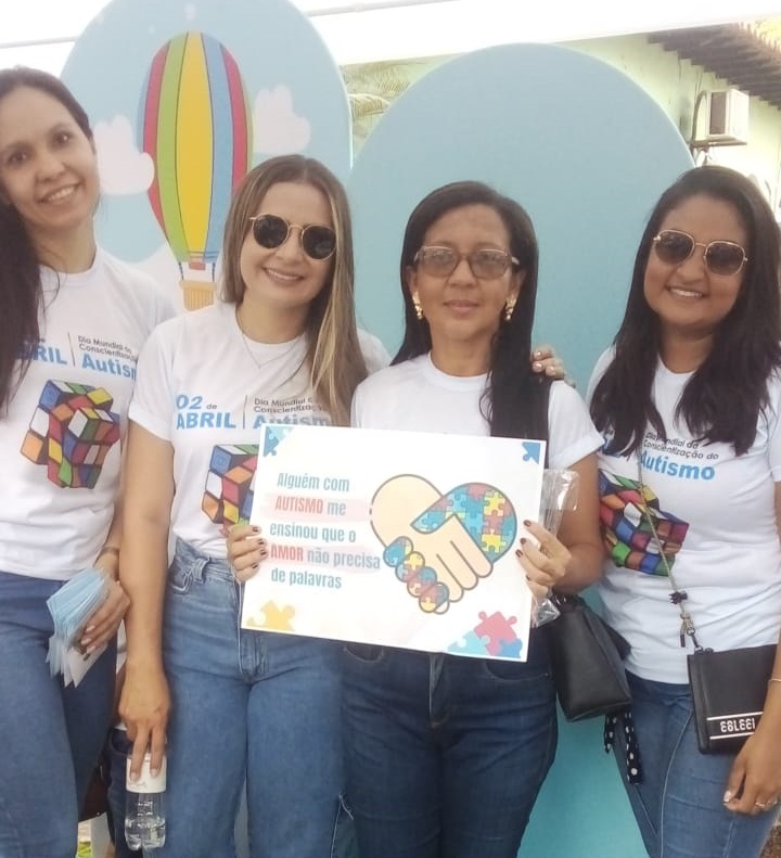 Equipe multiprofissional da Clínica São Francisco na Caminhada do Dia Mundial de Conscientização do Autismo. Genilda Cruz (psicopedagoga), Chesly e Ruana Ravelly (psicólogas) e Amanda (fonoaudióloga)