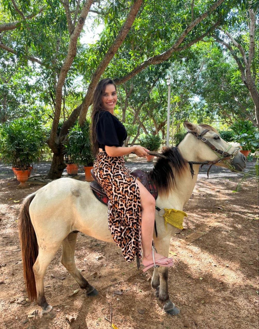 No ritmo da fazenda a empresária e coordenadora da Mulher no Município de Campo Maior Gabriella Pinho em momento de lazer.