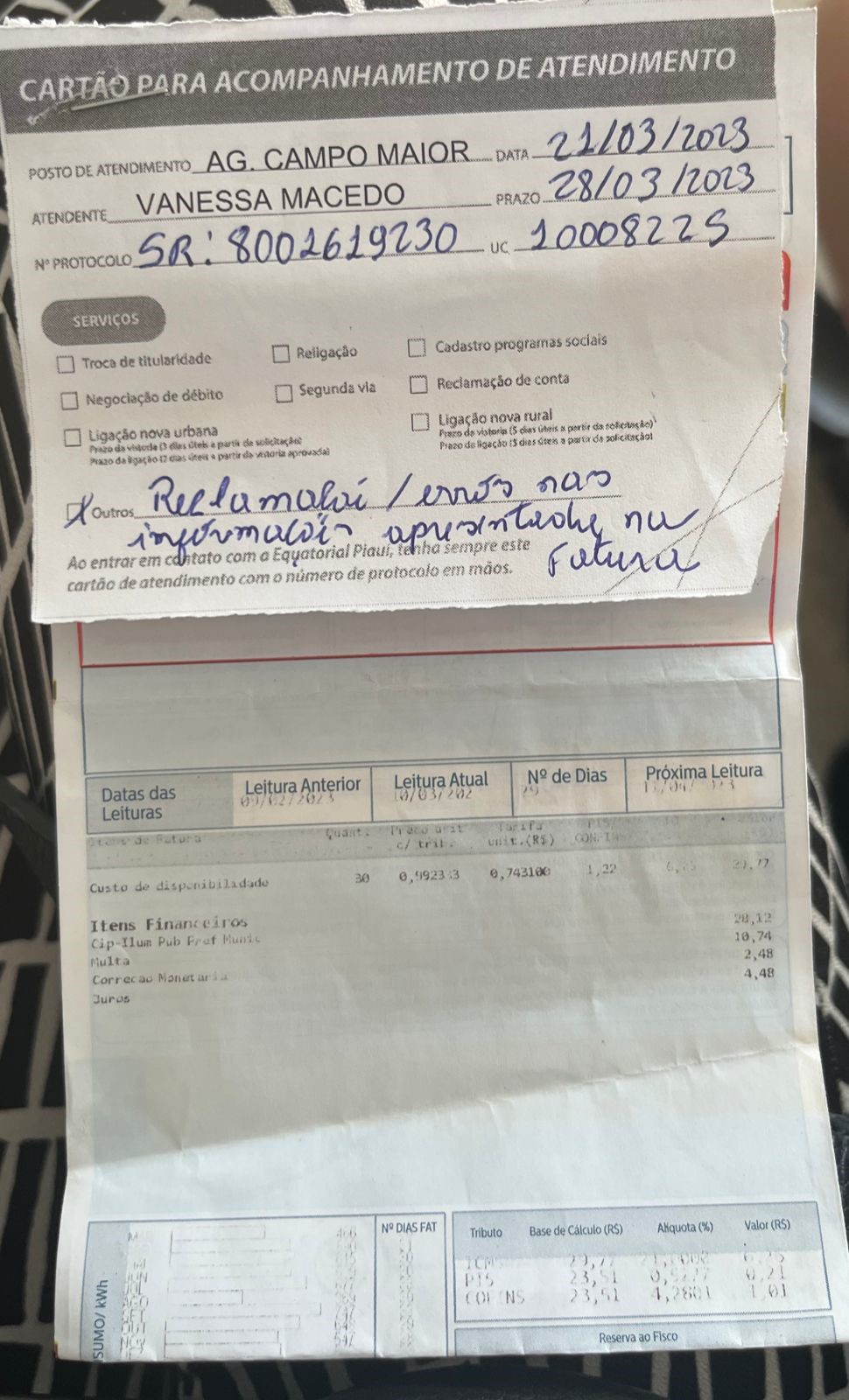 A defesa do empresário anexou ao processo judicial o protocolo de atendimento realizado pelo empresário datado de 21 de março deste ano em que é relatado erros nas informações apresentadas na fatura de energia. Hartônio Bandeira afirma ainda o laudo técnico juntado pela empresa em nada indica qualquer tipo de dolo, com danificação consciente e proposital do medidor.