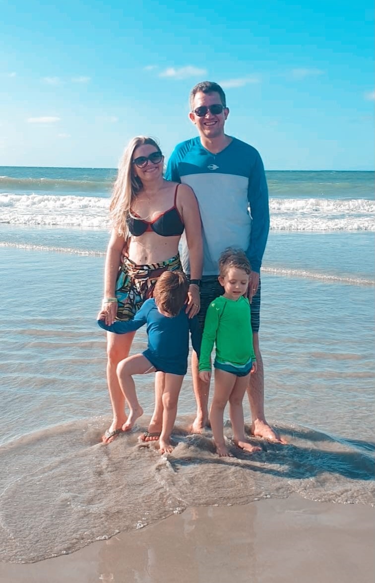 A empresária da Loja Home Store, Eronilea Santos, com a família em Luís Correia.