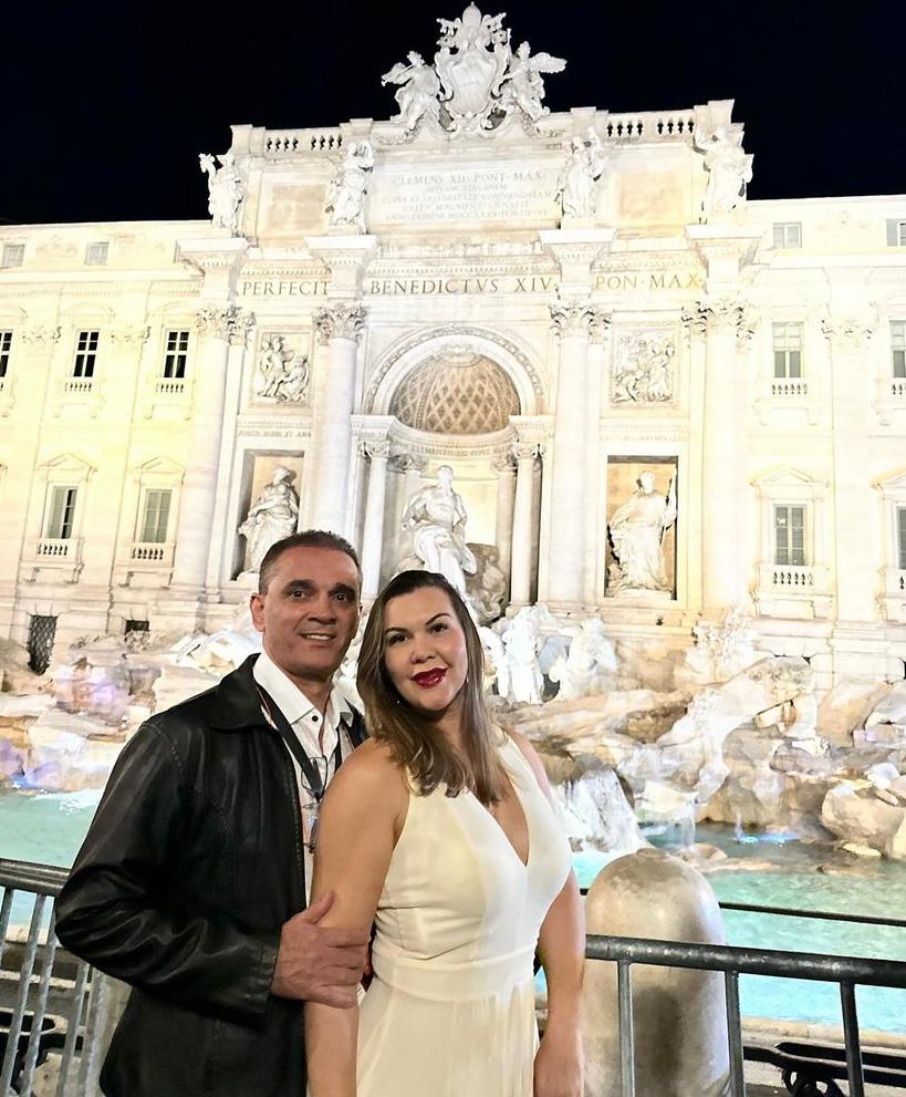 O lindo casal Francysllanne Ferreira e Zé Mark em temporada na Itália. O registro é no Fontana Di Trevi.