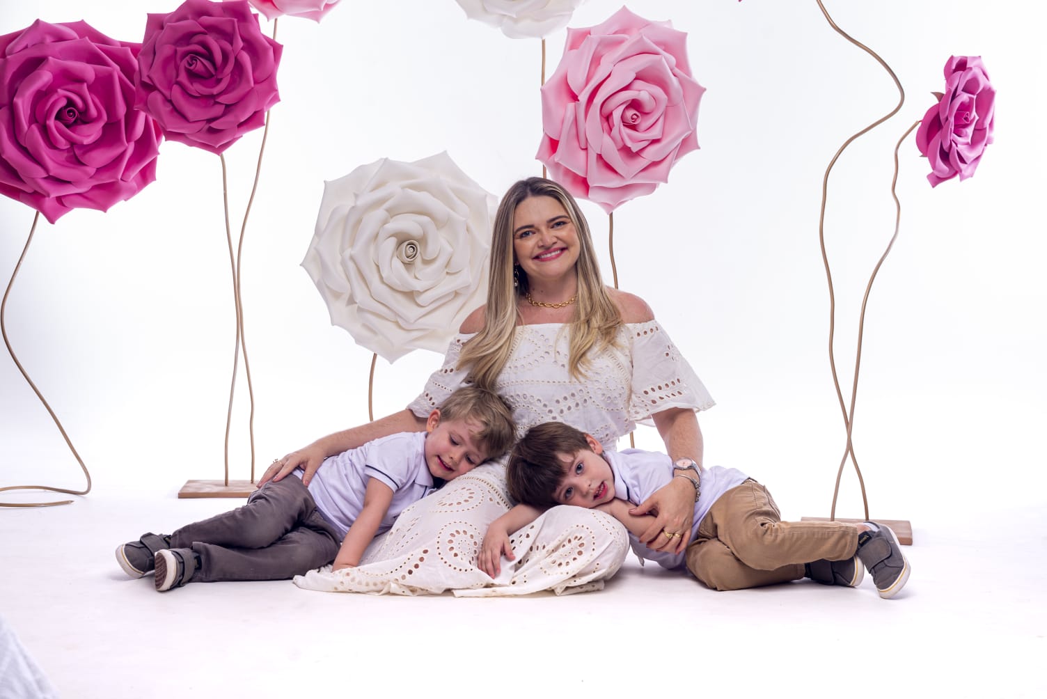 A empresária Eronilea Santos em lindo ensaio fotográfico com os filhos Heitor e Benjamin.