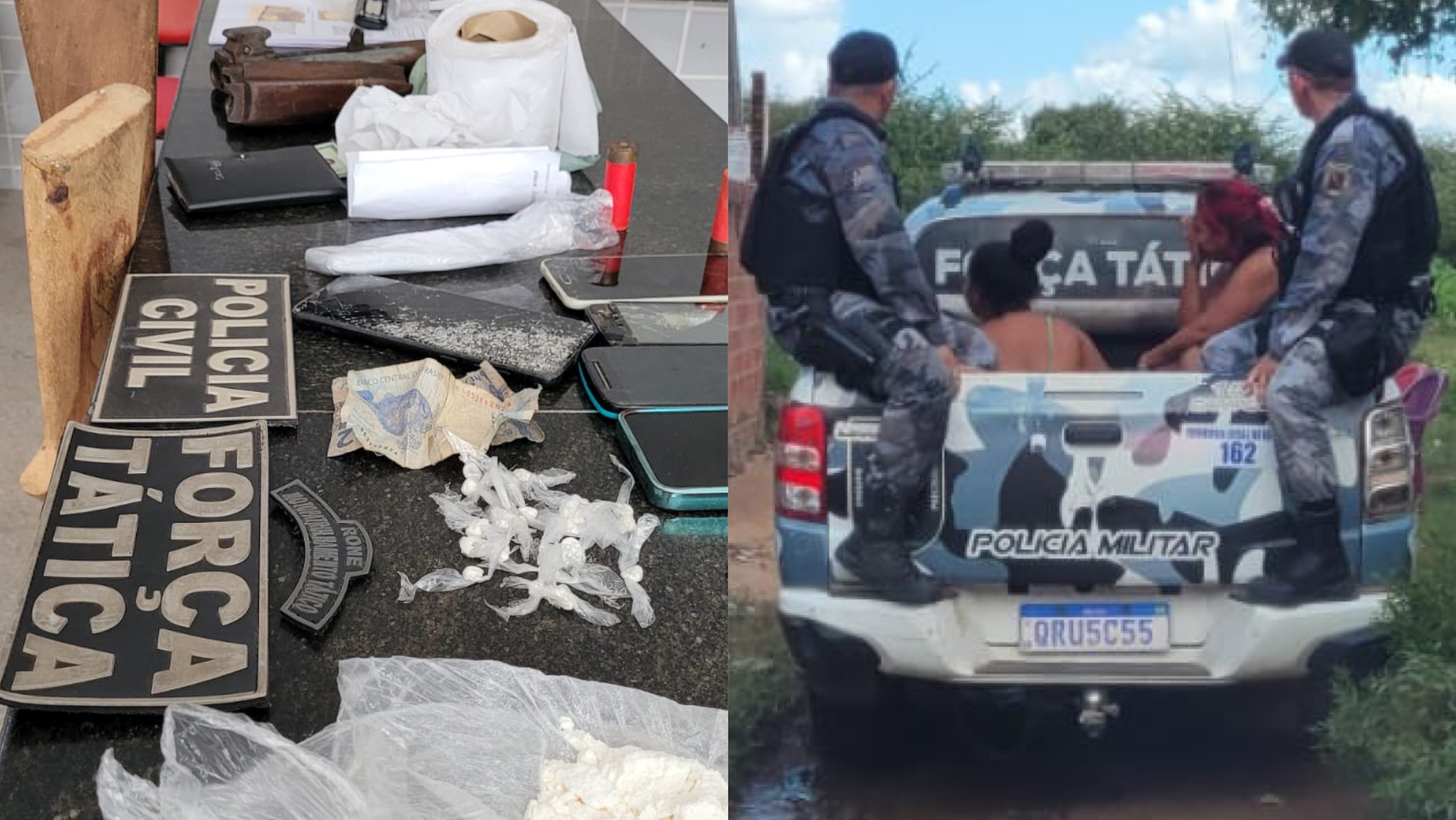 A operação resultou na prisão em flagrante de uma mãe e filha, identificadas respectivamente pelas iniciais M.A.S e M.J.S. Ambas foram autuadas por tráfico de drogas e posse irregular de arma de fogo.