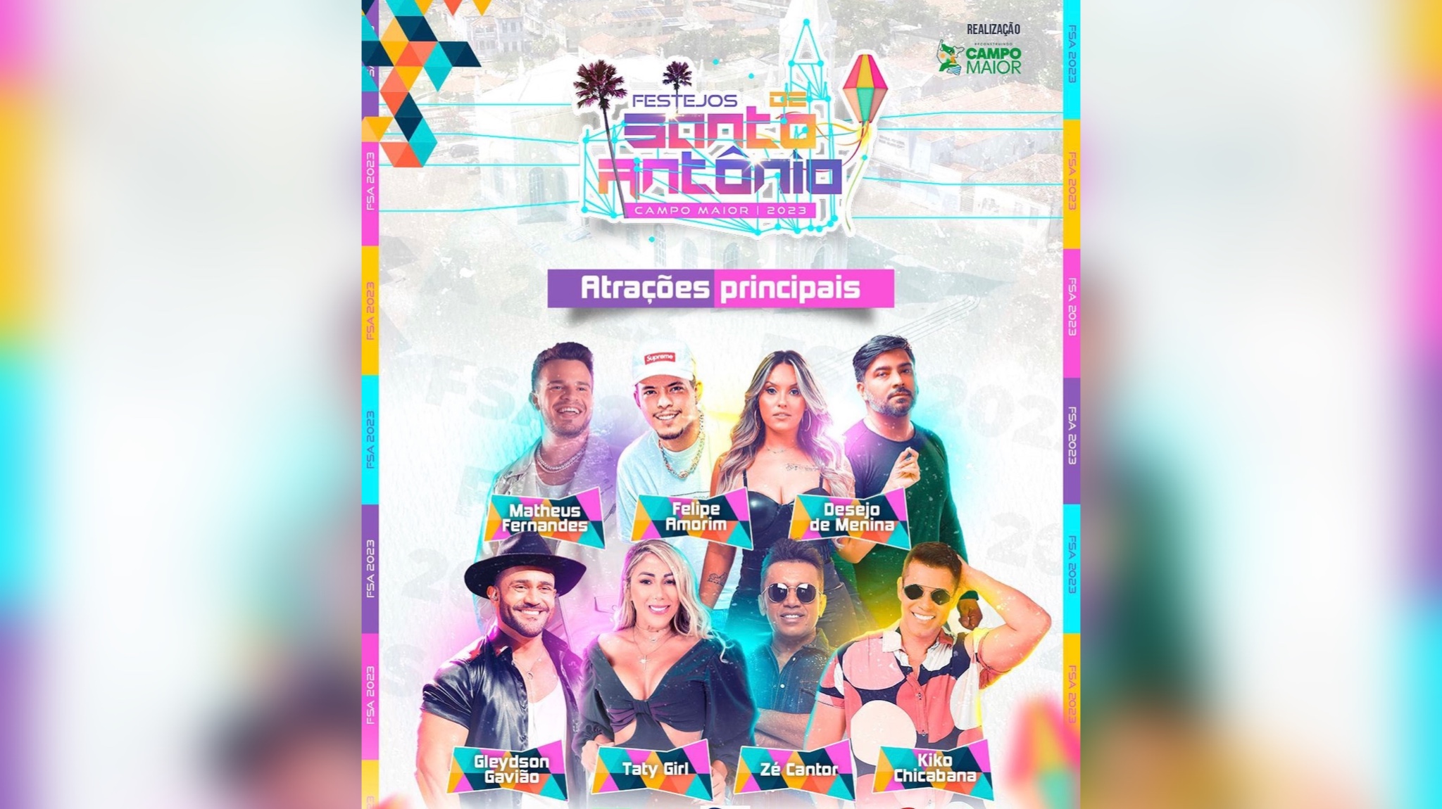 “A festa tá montada no maior festejo do Piauí. Campo Maior vai se tornar a capital da alegria e você não pode ficar de fora! Uma super estrutura de som, palco e luz será montada para receber grandes atrações na maior edição da festa de Santo Antônio em Campo Maior”, escreveu o prefeito.
