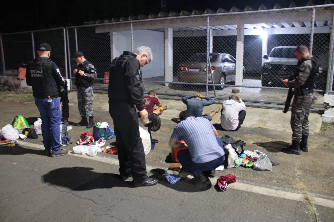 Na operação que reuniu Sejus, PRF e PM, sete detentos foram identificados com drogas e celulares, que deveriam ir parar dentro da penitenciária.
