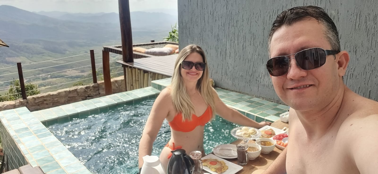 Eroniléia e Joelson comemoraram nove anos de união no chick Village Viçosa, em Viçosa, Ceará.