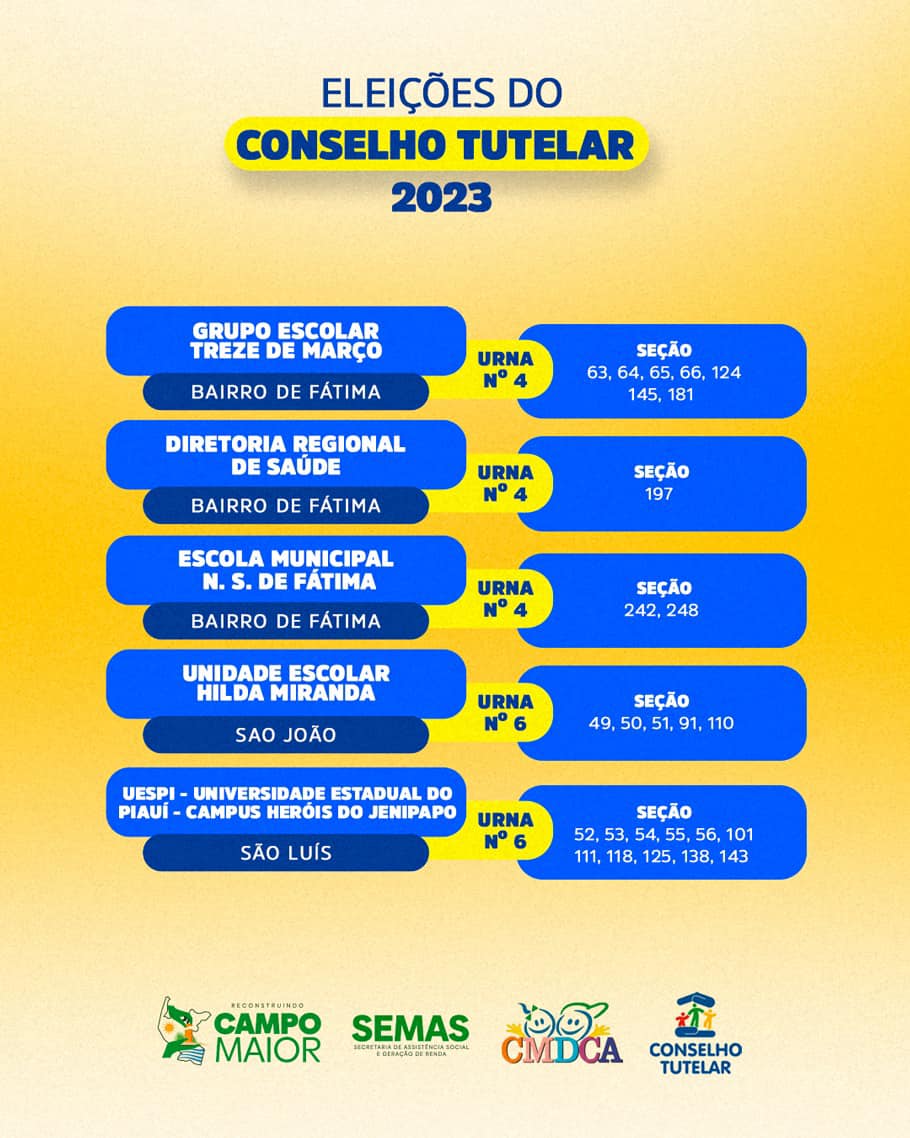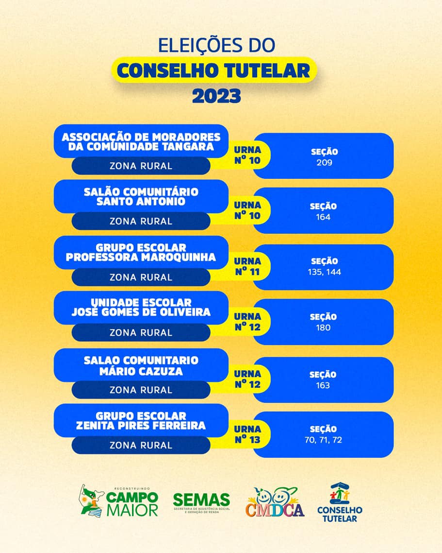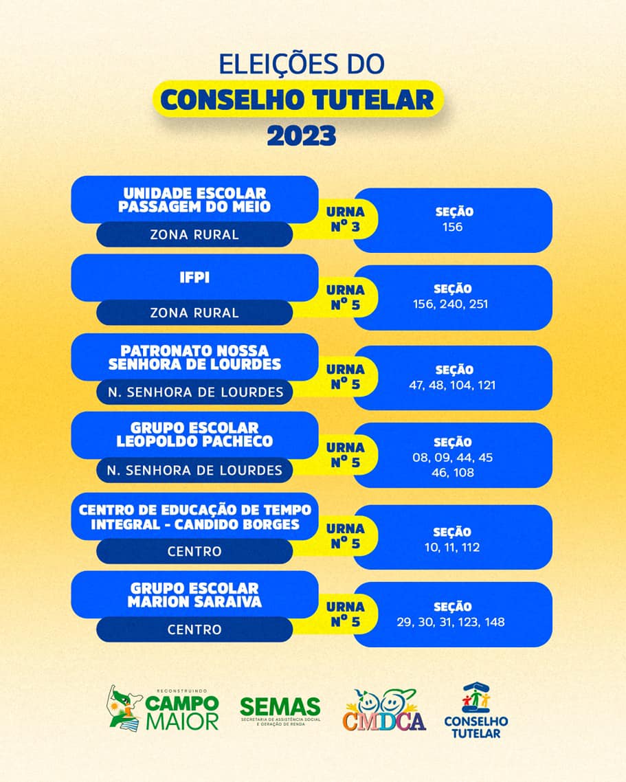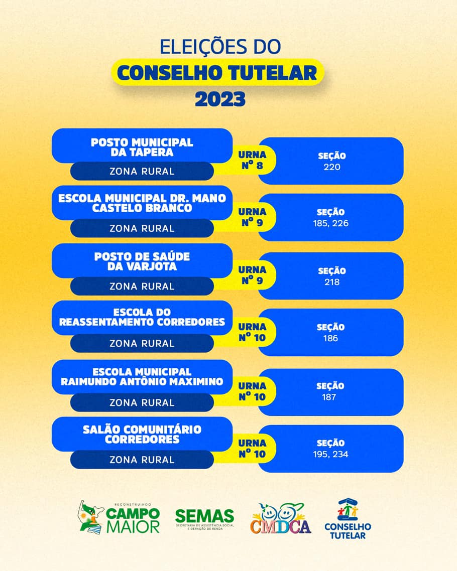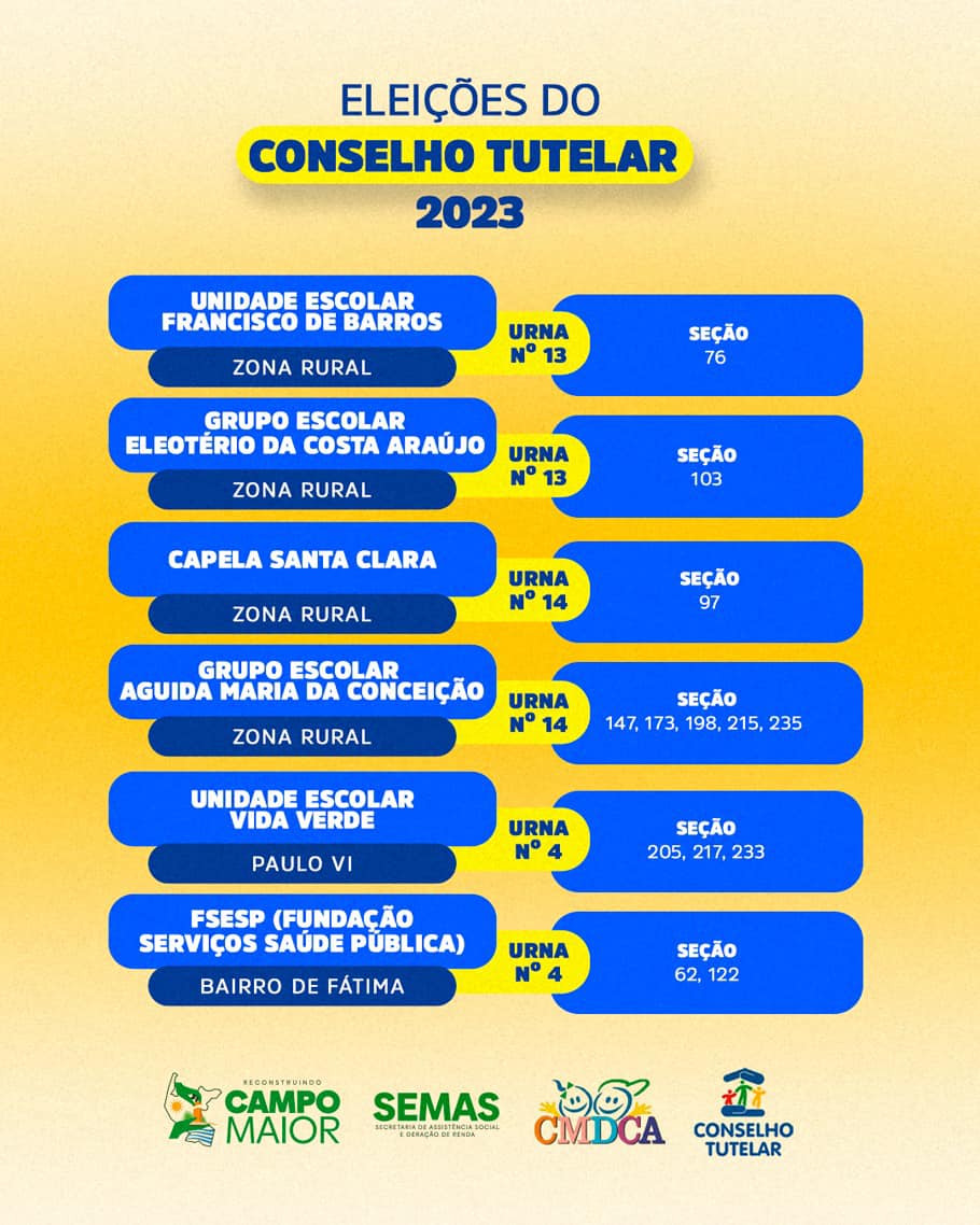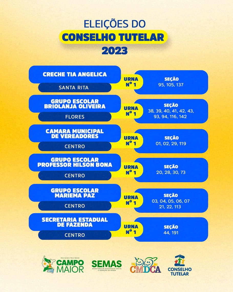 Serão 14 urnas distribuídas na zona urbana e rural de Campo Maior. A Prefeitura de Campo Maior divulgou onde irão funcionar as secções.
