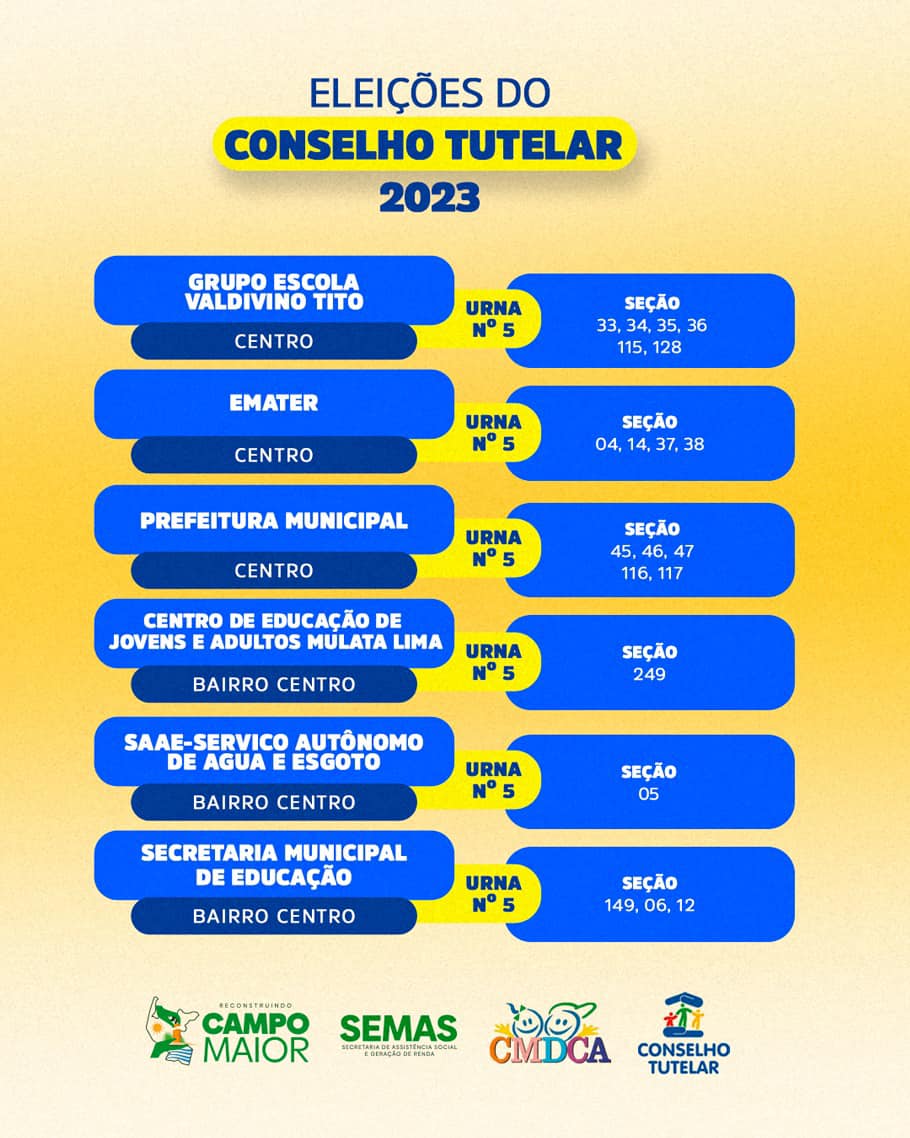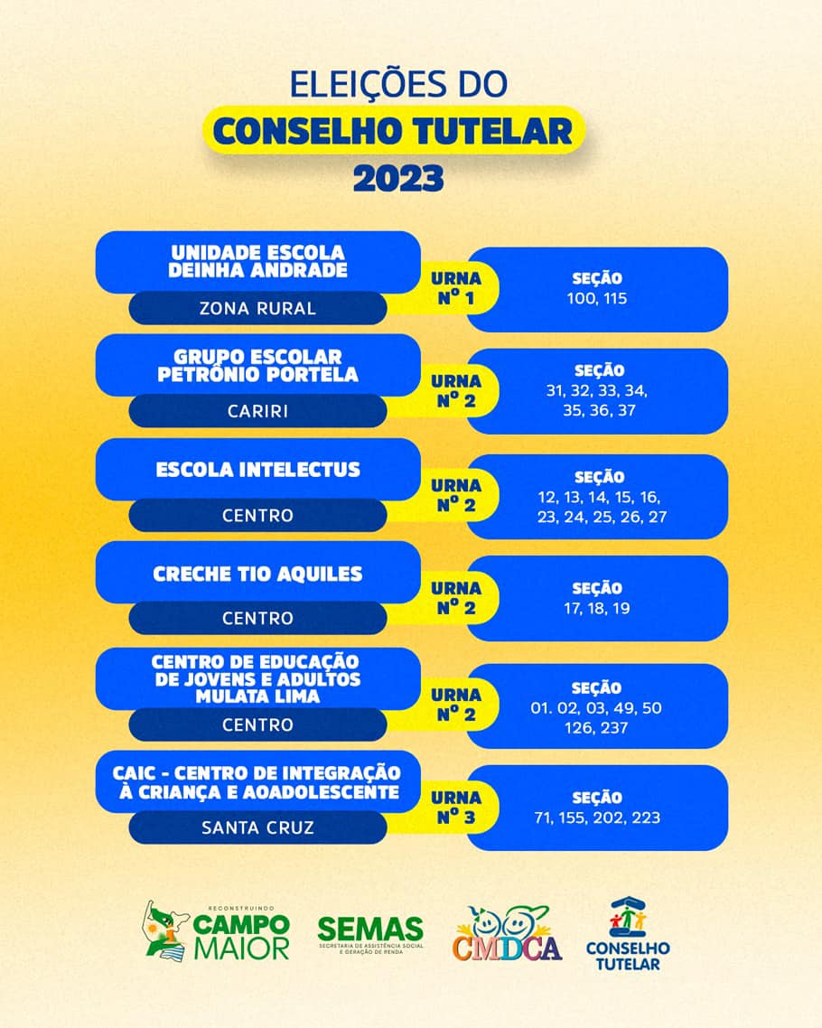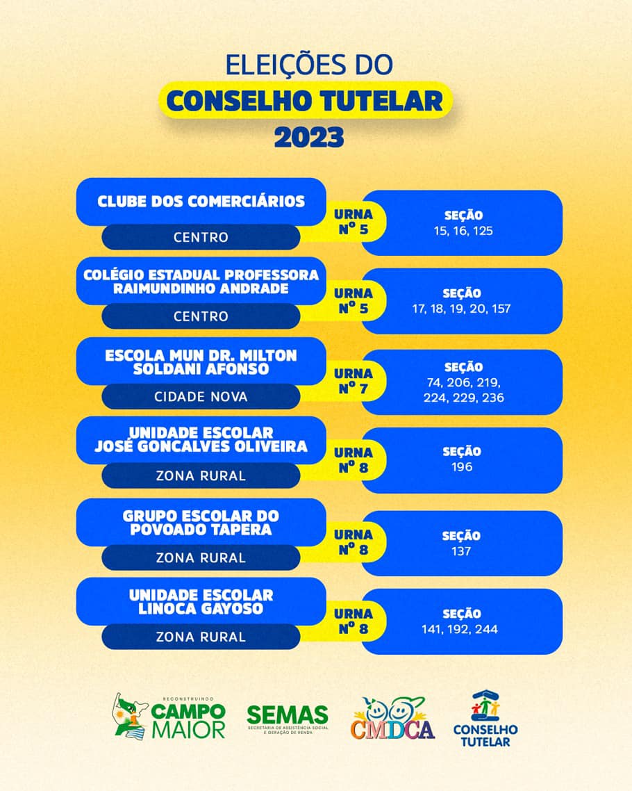 A eleição para a escolha dos novos conselheiros tutelares de Campo Maior acontece neste domingo (1º). Ao todo, 22 pessoas (veja a lista abaixo) concorrem no pleito que é coordenado pelo Conselho Municipal de Defesa da Criança e Adolescente. Serão eleitos os cinco mais votados.