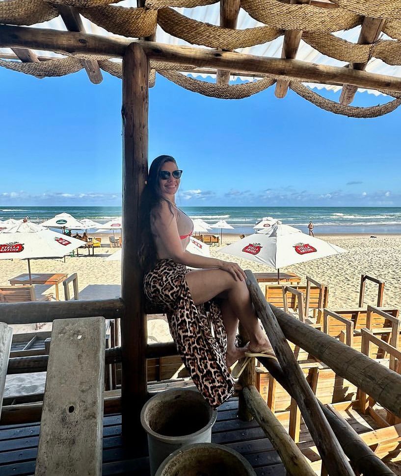 Um registro da bela Gabriella Pinho exibindo beleza às margens do Atlântico