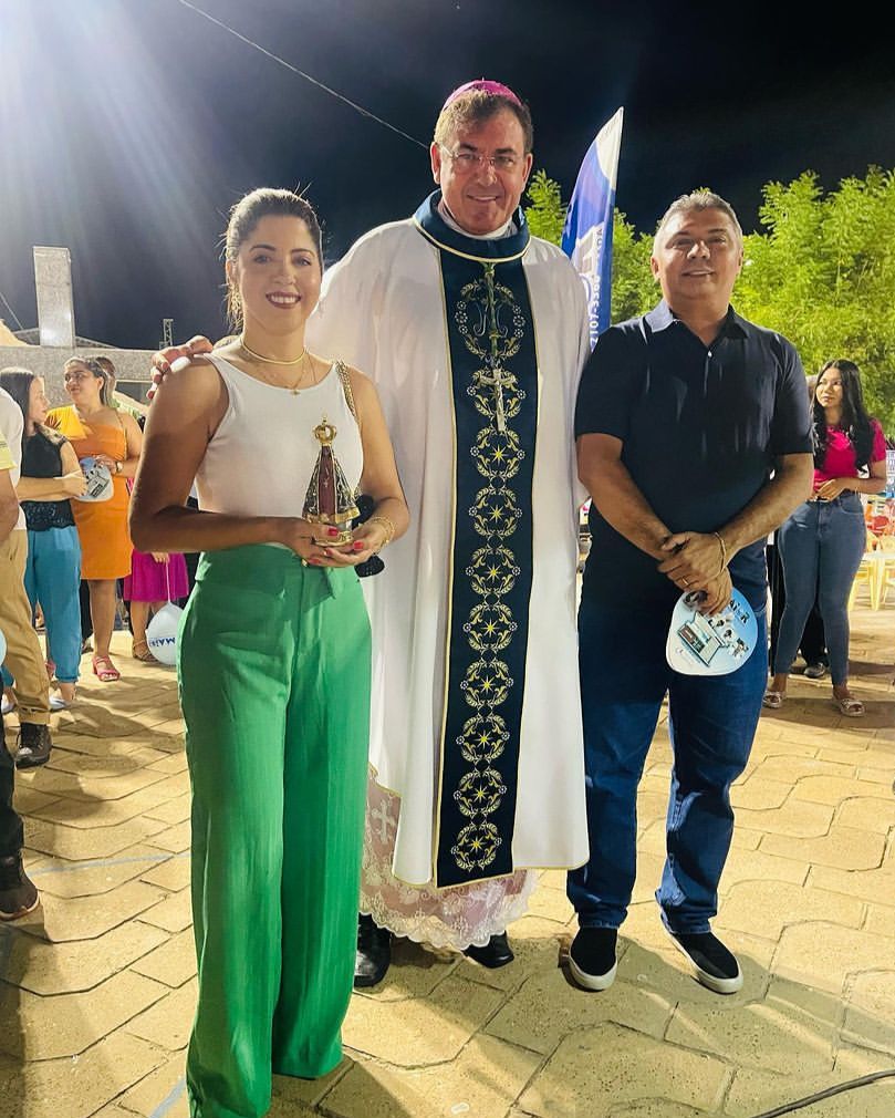 O bispo Dom Francisco ladeado pelo prefeito Zé Henrique e a primeira-dama Regiane Carla na abertura dos Festejos de Nossa Senhora de Nazaré.