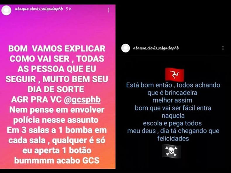 De acordo com o delegado, o adolescente relatou que as ameaças foram uma brincadeira. Nas redes sociais, as mensagens sobre o suposto ataque iniciaram a circular através de um perfil falso no sábado (09) e viralizaram em toda a cidade.