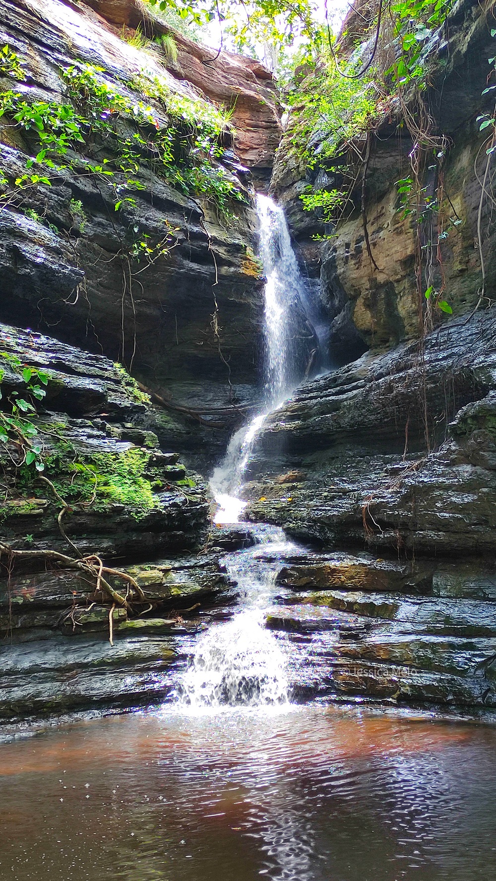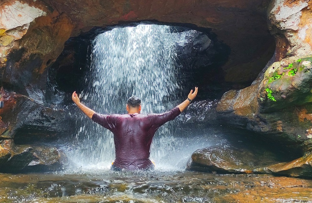 A Cachoeira do Funil se forma em uma fenda entre as duas rochas que originam três quedas d’águas e piscinas naturais com um banho gelado e renovador.