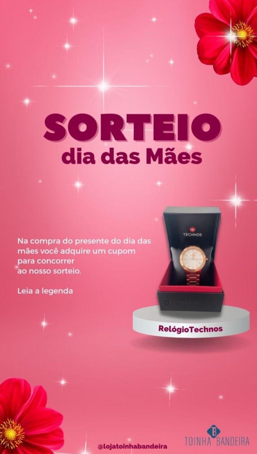 SORTEIO – E nesse Dia das Mães, ao comprar na loja você já concorre ao sorteio de um belo relógio Téchnos.