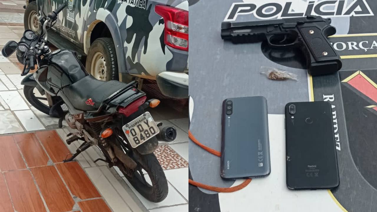 Com ele, os policiais encontraram uma arma de airsoft, réplica de arma de fogo utilizada em competições esportivas.