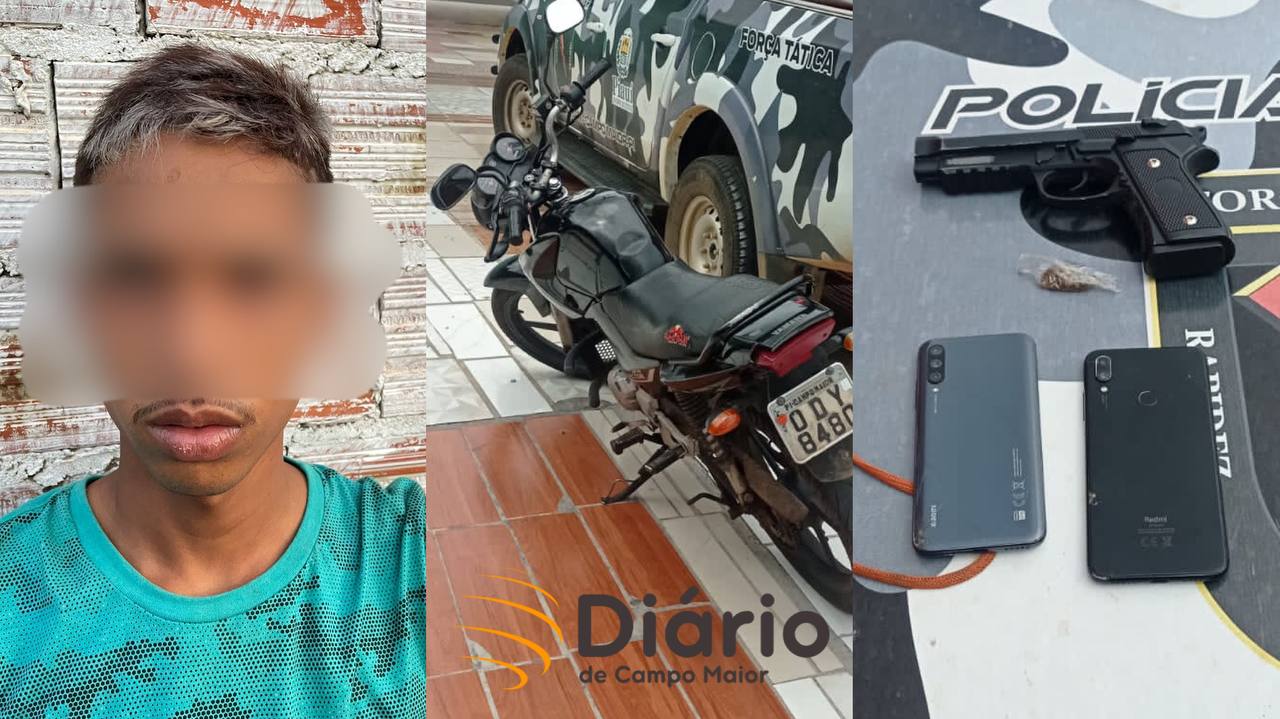 A Polícia Militar em Campo Maior-PI conseguiu fazer a apreensão de um adolescente de 17 anos identificado pelas iniciais K.R.S.A. Ele é apontado como o responsável pelo roubo de três motocicletas neste sábado (14/05).