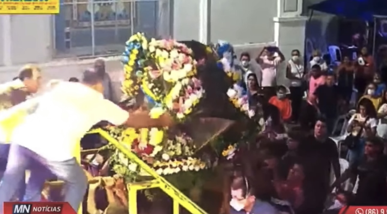 SUSTO: Imagem de Santo Antônio com mais de 300 anos ameaça cair após procissão; VÍDEO!