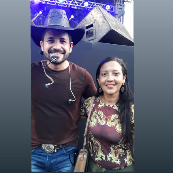 Registro desta colunista com Léo, da Banda Xenhenhem. Um show maravilhoso no Dia do Vaqueiro nos Festejos de Santo Antônio