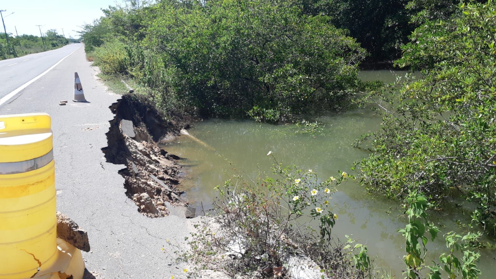 Devido ao nível de cheia da maré do Rio Portinho, um trecho da BR-343, que interliga os municípios de Parnaíba e Luís Correia, vem sofrendo um processo de erosão. O local que está cedendo fica próximo à ponte.
