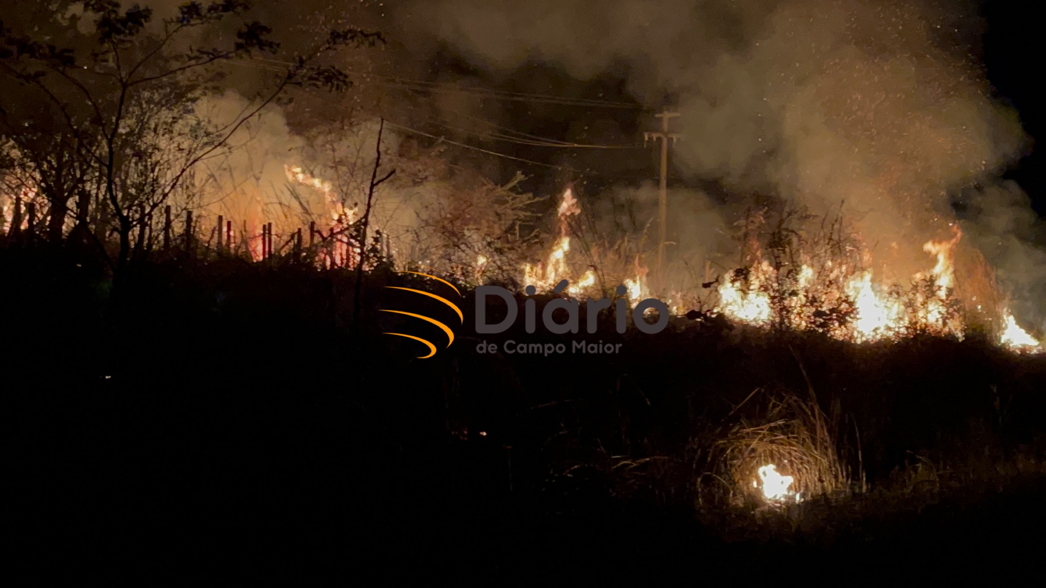 O Diário de Campo Maior flagrou na noite de hoje (03) um incêndio de grandes proporções nas margens da BR-343, no município de Altos-PI, na divisa com Campo Maior-PI.