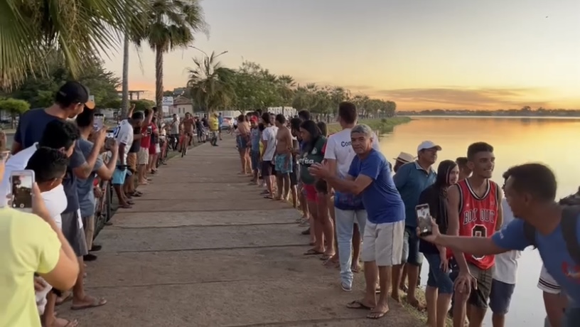 Uma grande quantidade de pessoas se concentrou na tarde desta sexta-feira (08/07) às margens do Açude Grande de Campo Maior, na BR 343, para acompanhar um salto de bicicleta dentro do cartão postal do município.