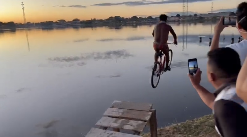 Salto de bicicleta dentro do Açude Grande movimenta Campo Maior
