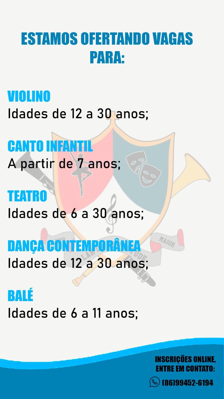 As inscrições poderão ser realizada através do WhatsApp: (86) 99452-6194. As aulas ocorrerão na sede do Lar da Juventude, na antiga cadeia pública municipal, nas proximidades da Praça do Rosário.