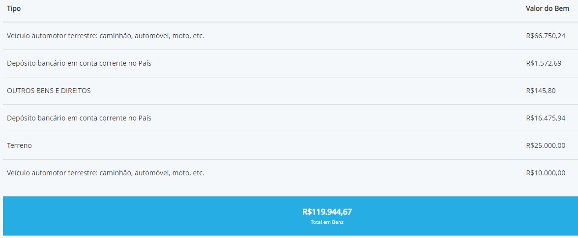 Entre os candidatos a deputado federal de Campo Maior, Major Costa Araújo declarou o maior patrimônio, um total de R$ 162 mil. Já para deputado estadual, Dogim Félix foi quem apresentou o maior patrimônio, que chega a R$ 84 mil.