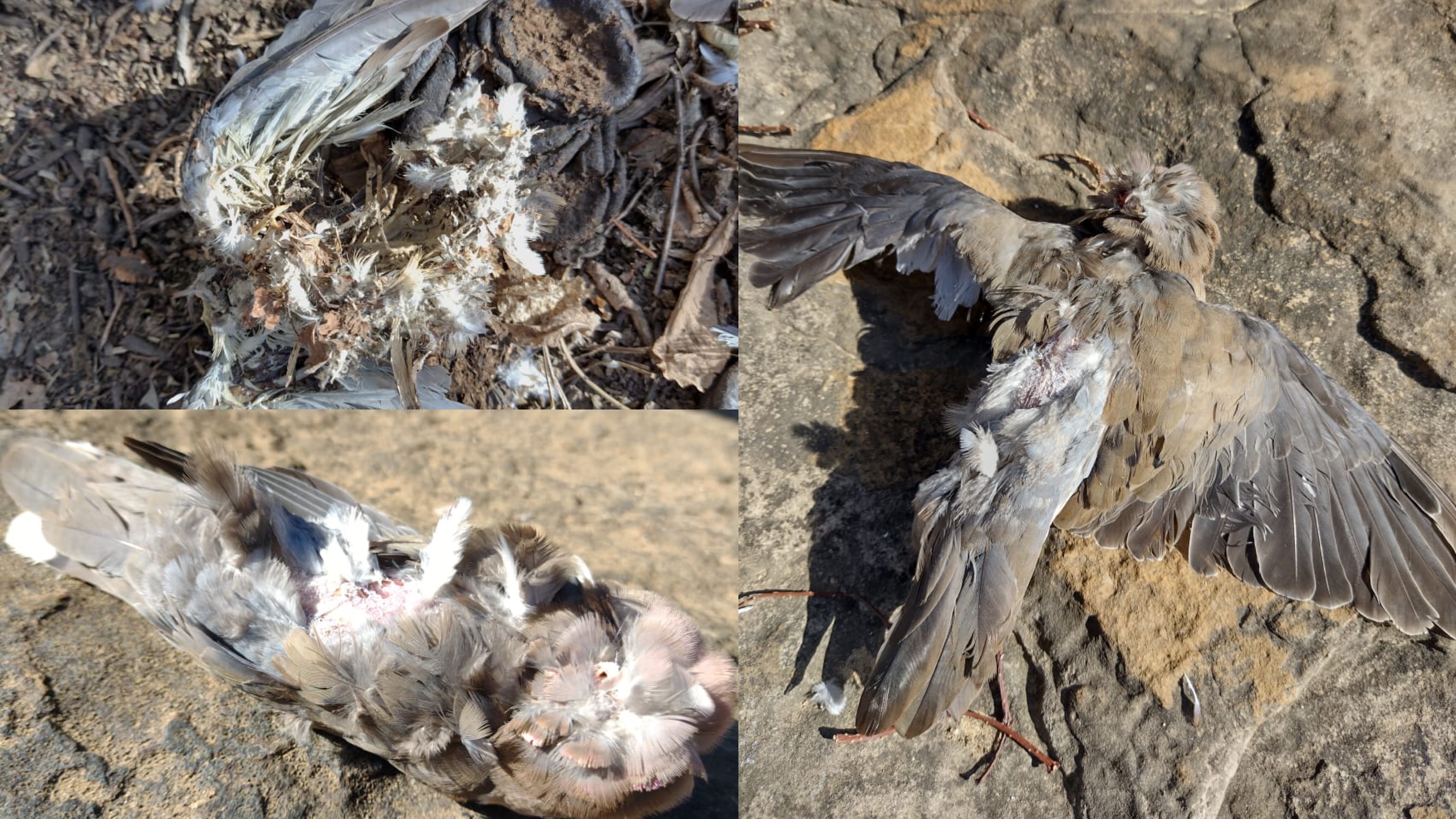 As aves mortas são juritis e rolinhas e foram achadas em 3 (três) localidades.
