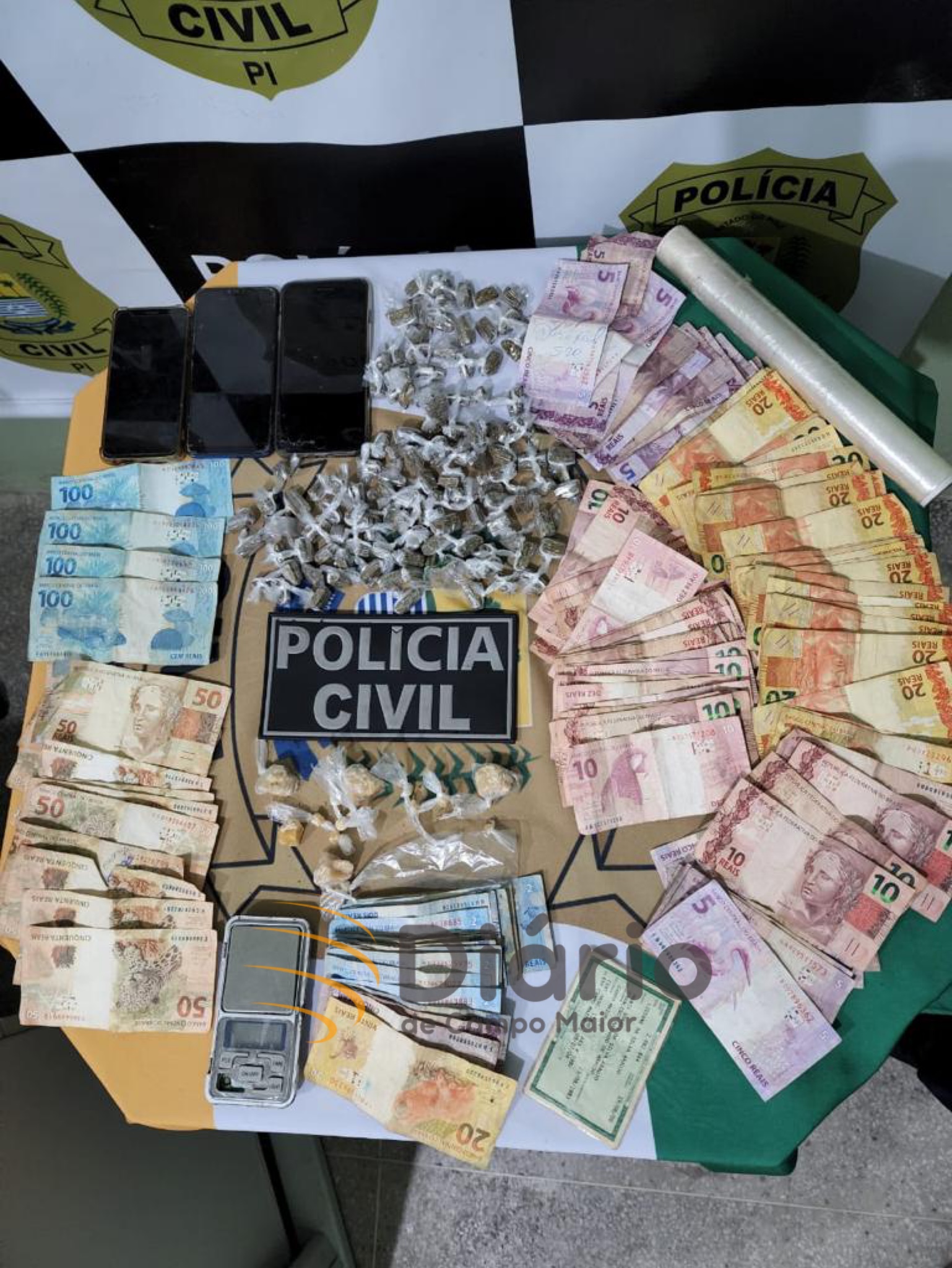 Uma mulher de aproximadamente 40 anos foi presa no fim da tarde desta terça-feira (30) em sua residência, no Bairro São João, no município de Campo Maior, região norte do Piauí. A Polícia Civil foi até sua casa cumprir um mandado de busca e apreensão e encontrou cerca de R$ 1700,00 reais em dinheiro trocado, 30 trouxinhas de maconha e crack, balança de precisão, papel filme e 3 celulares.
