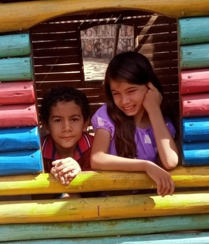 Os alegres Tiago e Marciele em momento de lazer no Dia das Crianças. São filhos da amiga Luciana.