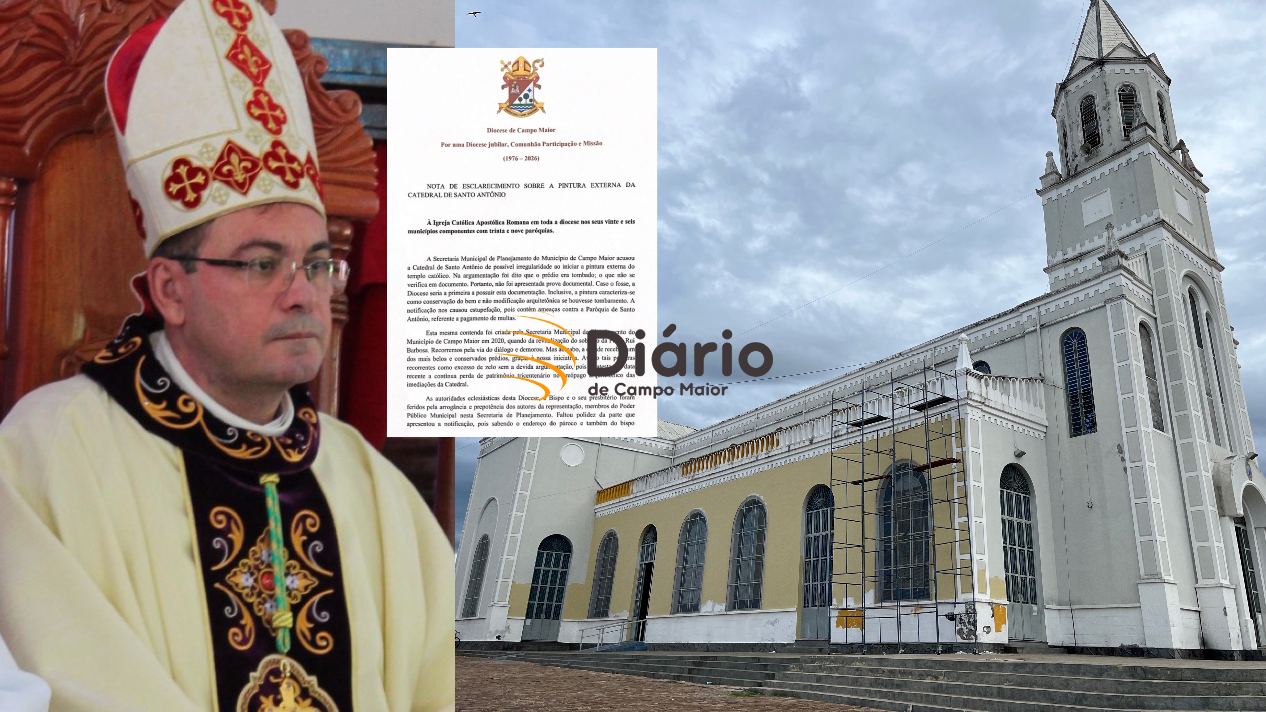 1ª MÃO: Diocese de Campo Maior acusa prefeitura de "arrogância e prepotência" sobre pintura da Catedral