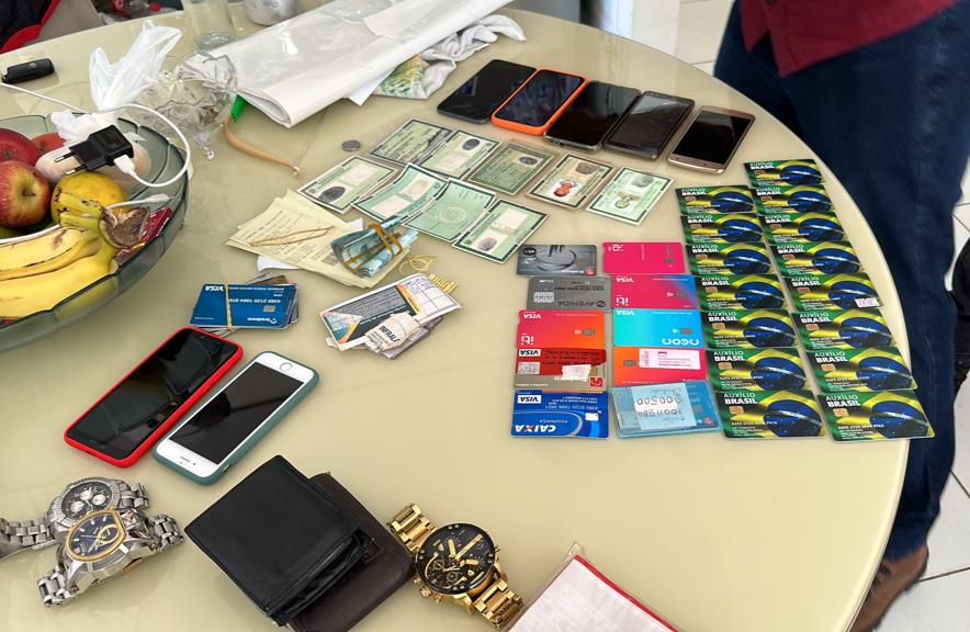 Ao cumprir a ordem judicial a equipe da DRCI obteve elementos de prova relacionados às compras fraudulentas com cartão de crédito, fechando a investigação, e deparou-se com uma verdadeira fábrica de documentos falsos em pleno funcionamento quando da entrada no imóvel. Foram apreendidos computadores, pen drives, cédulas em branco de RGs, documentos de identidade falsificados, e diversos cartões de crédito e cartões do benefício “Auxílio Brasil”, do Governo Federal.