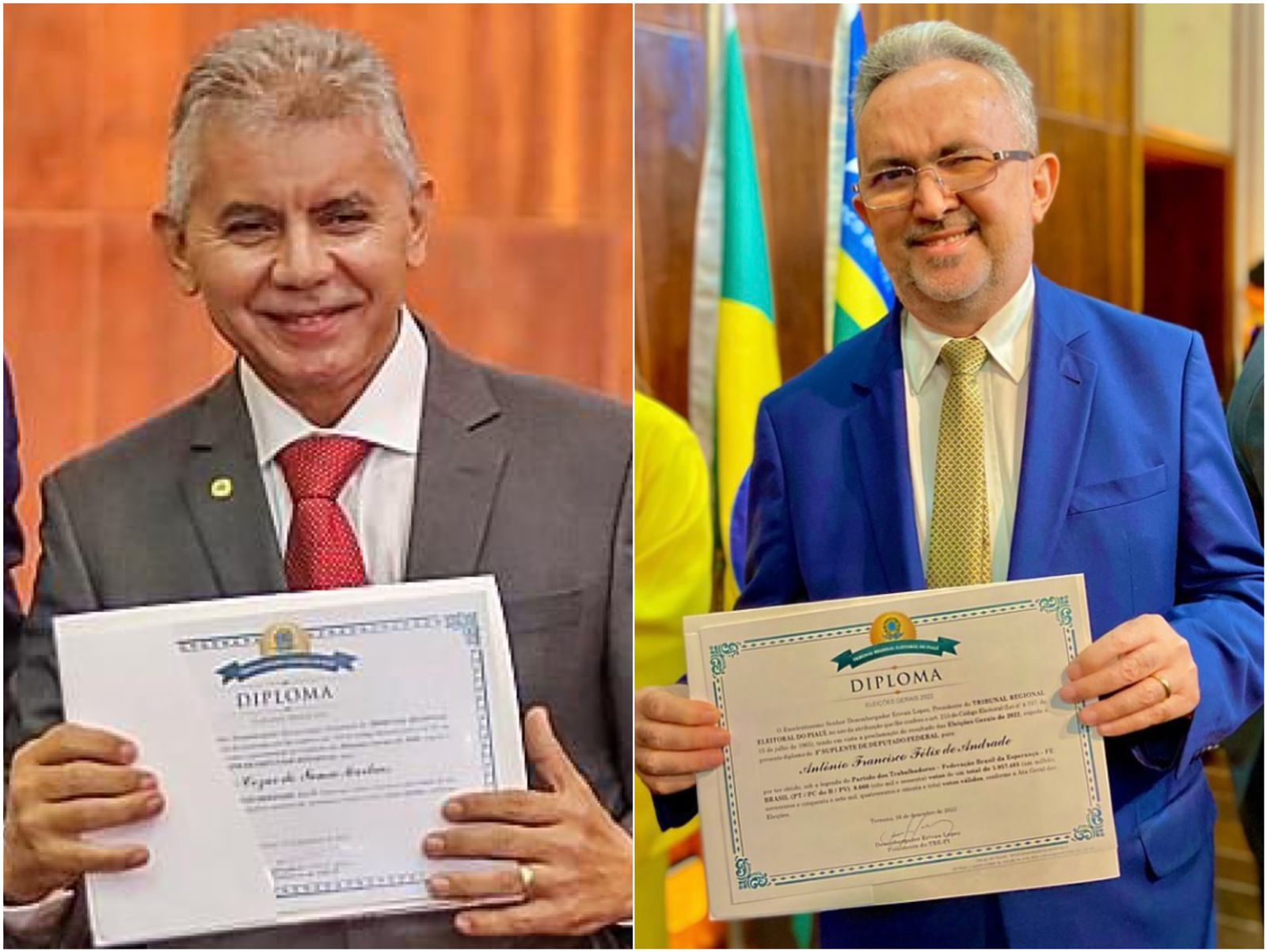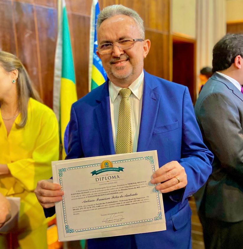 Já Antônio Felix foi diplomado 3º suplente de deputado federal na federação PT/PV. Ele já foi deputado estadual. “Meu agradecimento primeiramente a Deus, a todos que estiveram conosco nessa caminhada, a minha família, aos amigos e companheiros de luta!”, disse Antônio, que anunciou pretensão de disputar a prefeitura de Campo Maior.