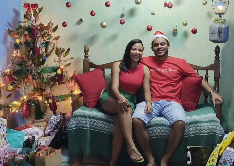 A turismóloga Jéssica Melo na companhia do namorado, o acadêmico de engenharia civil Aurélio Miguel, em celebração de Natal. Lindos!