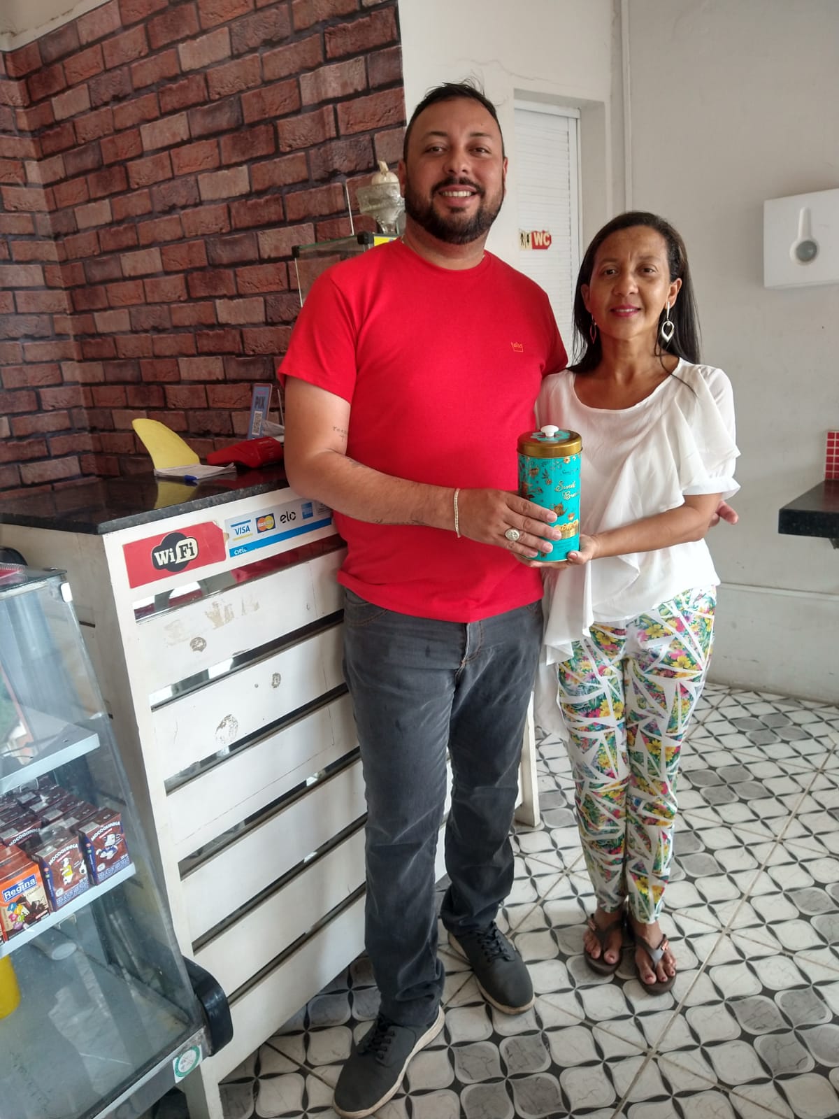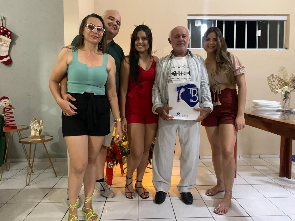 O empresário do segmento da gastronomia Marcos Barbosa realizando a tradicional troca de presentes com seus familiares em seu Restaurante Self Service BR.